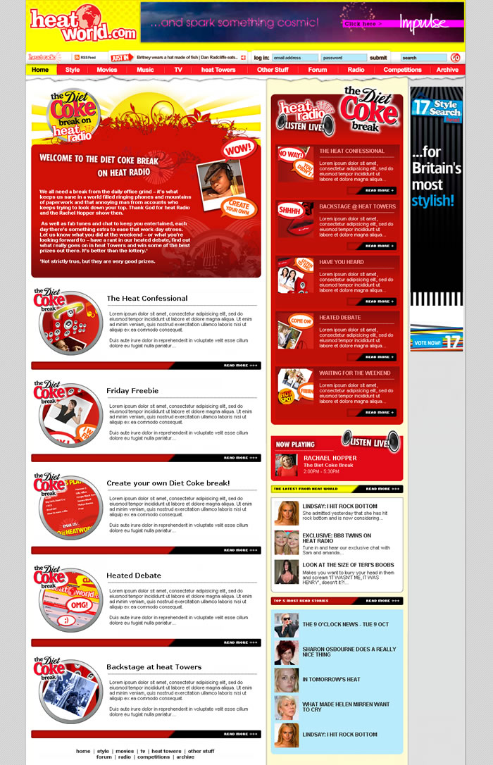 Heat Radio ‘Diet Coke Break’ Sectional Page